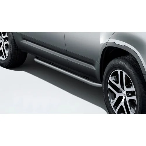 Tuburile laterale din aluminiu cu finisaj lucios ofera un aspect inspirat de off-road si completeaza designul exterior al vehiculului, oferind in acelasi timp o anumita protectie pentru usi si praguri in timpul conducerii off-road.