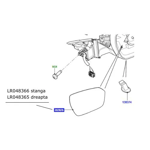 Sticla oglinda stanga LR Discovery Sport Range Rover Evoque LR048366